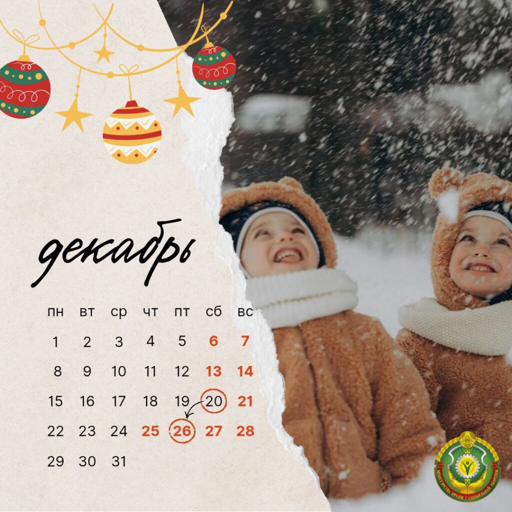 🔄Рабочий день с 26 декабря (пятница) переносится на 20 декабря (суббота).